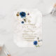Luxury Navy Blue Gold Floral Cross Marble Baptism Invitation