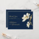 This gorgeous glam wedding invitation design features luxury navy blue, white, and gold elegant glitter flower Wedding Thank-you invitations that are perfect for any classy and sophisticated ceremony. This exquisite flower design is ideal for the trendy and stylish couple. Customise this design with your message and personalised information. All designs are printed.