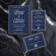 elegant old money dark blue wedding invitation