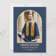 A premium, realistic mockup showcasing a navy blue and gold medical graduation invitation with both front and back views.