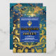 Personalised Luxury Elegant Peacock Blue Glitter Sikh Anand Karaj Wedding invitations.