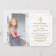 Unique design! It features gold glitter broken frame, a faux gold cross, girl photo, all on white background. On the back: gorgeous blush watercolor flowers heart wreath. Personalise tool to add your info. Matching items can be found in my Photo Baptism Collection