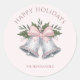 Luxury Pink & Silver Glitter Jingle Bells Custom Classic Round Sticker
