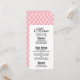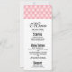 Event menu with a beautiful feminine pattern. Soft pink pattern in puffy diamond shapes with a gold bead in the centre. Luxury elegance vibe.