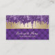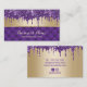 Luxury Purple Glitter Drips Chic Gold Beauty Salon Business Cards.