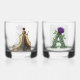 Elevate your home bar with this exquisite set of two rocks glasses from the AlexDizaine Luxury Collection. One glass features a sophisticated "A" monogram adorned with a mystical purple rose, while the other showcases a stunning golden silhouette of a Victorian lady, evoking timeless elegance. Crafted for those who appreciate art in every sip, this set makes a perfect wedding, anniversary, or housewarming gift. Unique, artistic, and designed with passion.