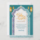 Invite your guests to a memorable Iftar dinner with this stunning luxury invitation. Featuring a majestic Islamic arch with intricate geometric patterns, glowing golden lanterns, and a deep teal-blue background, this design exudes elegance and tradition. Perfect for Ramadan gatherings, Eid celebrations, or any formal Islamic event. Easily customize the text to make it your own.