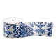 Luxury Royal Blue and White Baroque Floral Pattern Satin Ribbon