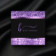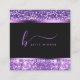 Luxury Royal Purple Glitter Modern Script Monogram Square Business Card