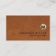 Stylish luxury monogrammed business card in faux sable brown leather look (printed) with a faux gold metallic shiny monogram medallion (printed). Easy to personalise on both sides. Suitable for consultants, real estate agents, personal stylists, makeup artists, hairstylist, salon manager, home interior designer or architects, boutique owners, lifestyle bloggers, artists, luxury service providers or other business professional.
