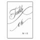 Luxury Script Black and White Wedding Number 6, Table Number