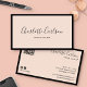 This luxury, minimalist business card features your name in elegant script calligraphy on a blush pink background. The thin black border adds a classic and sophisticated touch. This modern and stylish design is perfect for making a lasting impression on your clients. It's ideal for any professional in beauty-related industries such as a makeup artist, hair stylist, nail and lash specialist, beauty salon owner, and more. You can customise the front with your business name and title, and add your contact information, including telephone number, address, email, website address as well as a scannable QR code, social handle and social media icons (Instagram, Facebook) on the back.