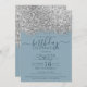 Luxury Silver Blue Glitter Confetti Birthday Invitation