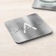 Luxury Silver Brushed Metal Monogram Name Initial Coaster