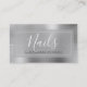 Silver Foil Brushed Metal Nail Salon Minimalist Business Card. Brushed Metal Nail Salon Business Card is perfect for a simple Nails, Nail Salon or Fingernail Polish business cards.