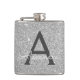 Luxury Silver Glitter and Sparkle Monogram Hip Flask