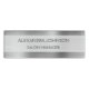 Silver Metallic Stainless Steel Minimalist Business Name Tag with white lettered typography for the monogram. The Foil Metal Business Card Name Tag can be customised with your name. Please contact the designer for customised matching items.