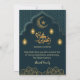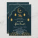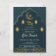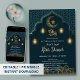 Make your event stand out with this premium teal and gold Iftar invitation. This design showcases a stunning combination of golden mandala flowers, a crescent moon with a star, and glowing traditional lanterns. The deep teal background with a 3D-style geometric arch creates a high-end look perfect for a luxury Iftar dinner or an elegant Eid celebration.