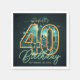 Celebrate a milestone four-zero in sophisticated style with this elegant 40th birthday paper napkin. The artwork features a stunning, large number 40 filled with a faux turquoise and emerald green agate mosaic texture, outlined in a realistic faux gold foil effect. Set against a deep, moody dark teal background with scattered gold confetti sparkles, this theme is perfect for a luxury evening party. This design works beautifully for a husband, father, brother, or any man who appreciates a refined aesthetic. Easily personalize the script typography with the birthday honoree's name and the specific date of the event to create a memorable keepsake for guests.
