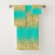 Luxury Turquoise Gold Glitter Bath Towel Set