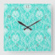 Luxury Turquoise & White Damask Decorative Pattern Square Wall Clock