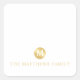 featuring white monogram in gold circle element with name in gold professional font style on white background.