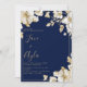 Luxury white gold floral navy blue Wedding invitations timeless blend of elegance and sophistication, this white and gold floral wedding invitation features delicate botanical accents and shimmering metallic details. The refined navy blue backdrop highlights the intricate gold foiling, creating a radiant and romantic impression. Perfect for couples seeking a classic yet opulent design, it sets the tone for an unforgettable celebration. Exquisite craftsmanship ensures every card feels as special as your day.