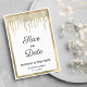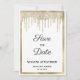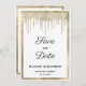 This luxury modern minimalist white and gold glitter drips border Wedding Save the Date Invitation is inspired by the simple and elegant was but with subtle hints of modern influence. It features a glam gold glitter drips border on a simple white background. This classic and luxury design will be a big hit with all your guests. All designs are printed.