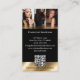 Showcase your wig brand or studio with the Luxury Wig Studio Arch Luxe Photo Black Gold Business Card, designed for a refined, modern, and high-end aesthetic. The front features an elegant arch-shaped photo space to display your professional portrait or signature wig styling work, layered over a subtle background image with soft opacity and a rich black-and-gold color overlay for a luxe, sophisticated look. Easily upload your logo or studio name to personalize the design and create a strong, memorable brand presence. The reverse side highlights a stylish three-photo gallery—perfect for showcasing custom wig designs, hair transformations, styling results, colors, or extensions. Each image features a soft cascading ombré effect, creating a cohesive and fashion-forward visual flow. Customize with your contact details and a QR code for quick access to online booking, your website, or social media. Ideal for wig artists, wig stylists, custom hair designers, salon professionals, and beauty experts seeking a sleek, upscale business card that leaves a lasting impression. Design by © Moodthology Papery