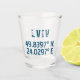 Modern shot glass design features latitude and longitude coordinates for Lviv, Ukraine in distressed dark blue font