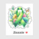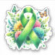 Lime green Lyme Disease awareness ribbon surrounded by flowers and butterflies.