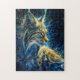 lynx bobcat bathed in blue yellowish neon light jigsaw puzzle