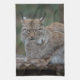 A lynx resting on some wood and looking straight at you. The cat with the tufts of hair on her ears.