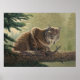 Solitary Moment is a painting of a lynx pausing for a moment before crossing a stream on a log.