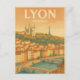 Vertical 2:3 vintage travel poster of Lyon — France, elevated view over the Old Town (Vieux Lyon) with the Basilica of Notre-Dame de Fourvière on the hilltop, and the Saône River curving below with historic bridges.