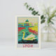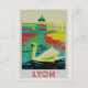 For all Lyon lovers or for those who like to share their travels with their friends. Retro postcard with banks of the Rhône river view near Lyon original illustration.