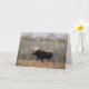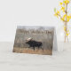 Bull Moose Card "captioned". A big bull moose lumbers through the scrub brush in a sand hills area of southeastern Alberta, Canada. Moose seem out of place in this dry, sandy terrain that has very little water to support the aquatic vegetation moose usually feed on.