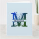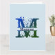 Fancy split 'M' monogram in blues and greens with silhouettes of fancy flourishes and butterflies. Add your own name as centre text.