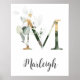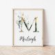 M Letter Monogram Greenery Nursery Name Wall Print