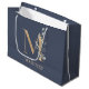 Letter M monogram floral. Letter M in golden brown texture accented with green watercolor compound leaves, flower blossoms and melted gold droplets. Personalise with name in matching font.