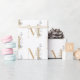 Letter M monogram floral. Letter M in golden brown texture accented with green watercolor compound leaves, flower blossoms and gold dust.