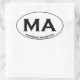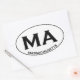 This "MA" oval logo represents Massachusetts USA. This northeast state is famous for its history, scenery, autumn colours, harbours, maritime industry, seafood, unique cuisine, local art, and other attractions.
