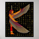 Ma'at poster of the Ancient Egyptian Goddess of Justice, Truth, Balance and Order. Ma'at standing with spread wings on golden Egyptian Hieroglyph on black background.