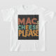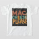 This playful and cheesy t-shirt features the phrase "Mac and Cheese Please" in a vibrant, multi-coloured font. The design incorporates macaroni and cheese shapes, cheese doodles, and a burst of colourful cheese sauce, creating a fun and appetising look. The shirt is perfect for food lovers and anyone who appreciates a good bowl of mac and cheese.