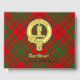 Clan MacAlister of Glenbarr crest badge surrounded by a strap and buckle over tartan background. Custom front, back and spine text.