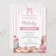 Celebrate with love and sweetness using this macaron birthday invitation! With pretty pink tones and a soft striped background, this charming design is perfect for a chic and delicious celebration. Personalise with your party details for a stylish, fun-filled day.