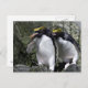 The Macaroni Penguin (Eudyptes chrysolophus ) is a species of penguin found from the Subantarctic to the Antarctic Peninsula . One of six species of crested penguin , it is very closely related to the Royal Penguin , and some authorities consider the two to be a single species. It bears a distinctive yellow crest, and the face and upperparts are black and sharply delineated from the white underparts. Adults weigh on average 5.5 kg (12 lb) and are 70 cm (28 in) in length. The male and female are similar in appearance although the male is slightly larger with a relatively larger bill. Like all penguins, it is flightless, with a streamlined body and wings stiffened and flattened into flippers for a marine lifestyle.