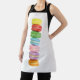Photo of a stack of pastel coloured macarons cookies on an apron.
