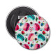 Cute bottle opener with a watercolor pattern of sweet and delicious french macarons tumbling all around. Pretty watercolors - pink, red, and teal green. Random berries floating around too including strawberries, cherries and blueberries. Fresh and delicious. Set on a green polka dot background. Has a soda shoppe flair.