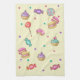This whimsical kitchen towel will bring a smile to Mum's face while she's doing the dishes! The towel is a pretty lemon yellow and features colourful macaroons, cupcakes, lollipops, candy and doughnuts in turquoise, pink, yellow and purple. There are polka dots scattered about. There is also another kitchen towel, a pot holder and oven mitt set and an apron that coordinates in our shop too!